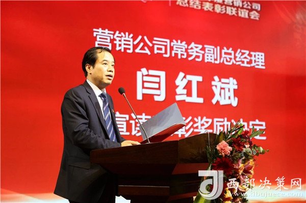 西鳳酒營(yíng)銷(xiāo)公司常務(wù)副總經(jīng)理閆紅斌宣讀《關(guān)于對(duì)2018年度先進(jìn)單位、先進(jìn)個(gè)人給予表彰獎(jiǎng)勵(lì)的決定》