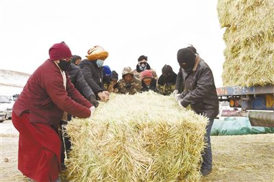 2月25日,玉樹藏族自治州玉樹市上拉秀鄉(xiāng)日瑪村,寒風(fēng)瑟瑟,村民內(nèi)心卻是無比溫暖,黨委政府下?lián)艿娘暡萘弦慌慌乩\到了日瑪村,村民自發(fā)組織卸載搬運飼草料,分到飼草料的牧民,用自家面包車?yán)\飼料,臉上掛滿了笑容。