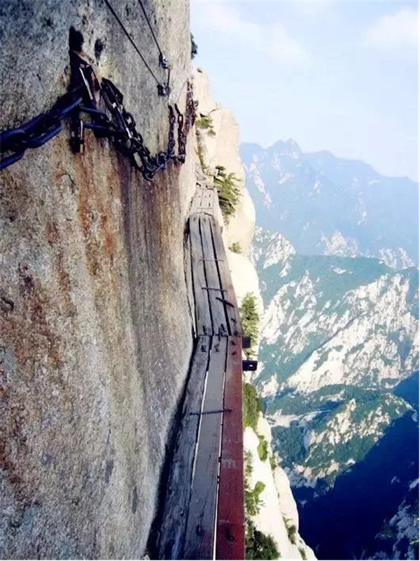 我站在華山兩塊窄窄的木板上,依靠鐵釘楔入巖石作為支撐,我的腳下,是1000米的深谷,冰雪的路面很滑。我來華山旅游純粹是因?yàn)樵诨ヂ?lián)網(wǎng)上瘋傳的一張圖片,也就是指“世界上最危險(xiǎn)的登山路”那張。現(xiàn)在有了安全保護(hù)措施,實(shí)際上用不著擔(dān)心危險(xiǎn)了??謶致可闲念^,頭腦變得有些麻木。西安是中國的古城,在強(qiáng)盛朝代時(shí)期占有重要的歷史地位。