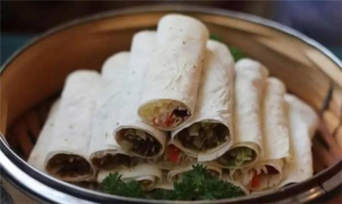 好理解的講,就是煎餅卷菜,不過人家這個(gè)煎餅是烙出來的,詳細(xì)的制作工序你來就餐時(shí)可以細(xì)細(xì)的與老板聊得。