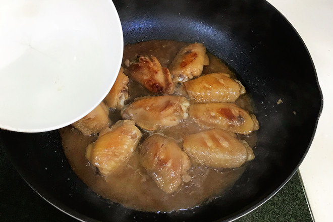 10.燉好后,開(kāi)大火收汁,完全收干,讓醬汁在雞翅上掛住。
