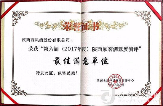 西鳳股份公司獲得“第六屆陜西顧客滿意度測(cè)評(píng)” 最佳滿意單位光榮稱號(hào)