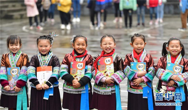進(jìn)入二十一世紀(jì),隨著我國(guó)義務(wù)教育的普及和農(nóng)村義務(wù)教育學(xué)生營(yíng)養(yǎng)改善計(jì)劃等一系列教育惠民政策的落實(shí),當(dāng)?shù)攸h委政府大力改善學(xué)校辦學(xué)條件,完善教育精準(zhǔn)資助體系,保障學(xué)生特別是適齡女童能夠充分接受良好的教育。目前,適齡女童的入學(xué)率已經(jīng)超過(guò)99%,“狗不耕田,女不讀書(shū)”的傳統(tǒng)觀念得到徹底改變,越來(lái)越多的苗山適齡女童得以通過(guò)接受良好的教育實(shí)現(xiàn)自己的夢(mèng)想。新華社記者 黃孝邦 攝
