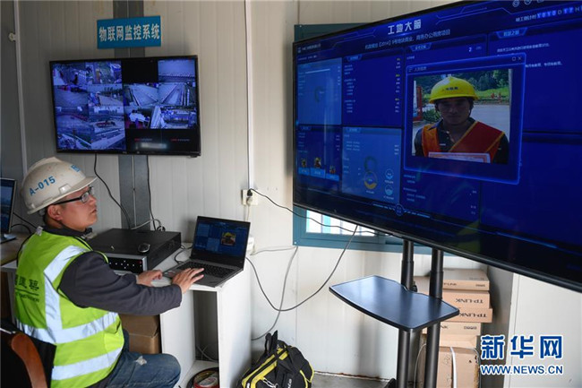 3月26日,工作人員在“浙江智慧之門”項目工地察看“工地大腦”的實時數(shù)據(jù)。據(jù)了解,“工地大腦”匯總了人員、設(shè)備、物料、進度、環(huán)境等要素。新華社記者黃宗治攝