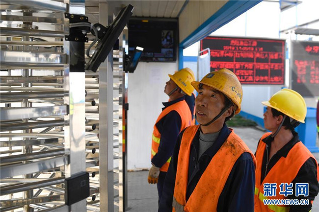 3月26日,工人在實名制通道使用人臉識別技術(shù)進入“浙江智慧之門”項目工地。新華社記者黃宗治攝