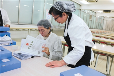 北京市陳經(jīng)綸中學(xué)高中校區(qū)負(fù)責(zé)人檢查食堂營(yíng)業(yè)執(zhí)照。校方供圖
