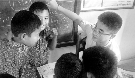 上圖:姚熙遠(右一)在印度做志愿者。