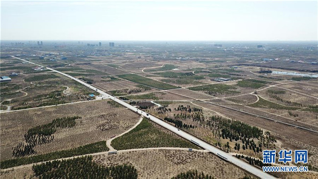 這是雄安“千年秀林”(3月21日無(wú)人機(jī)拍攝)。新華社記者 楊世堯 攝