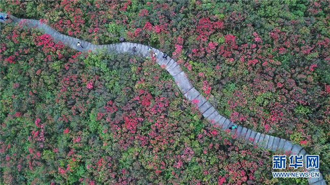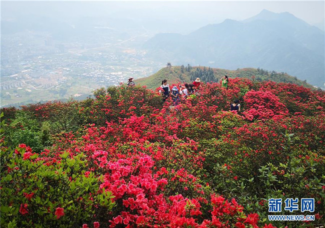 4月25日,游客在貴州省丹寨縣龍泉山景區(qū)觀賞映山紅。暮春時(shí)節(jié),位于貴州省黔東南苗族侗族自治州丹寨縣龍泉山景區(qū)的映山紅陸續(xù)開放,紅遍山嶺,吸引眾多游客前來賞花觀光。 新華社記者 楊文斌 攝