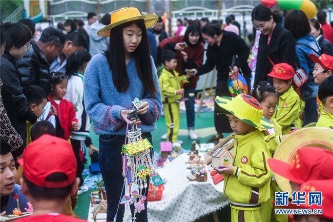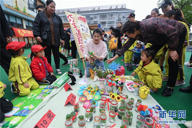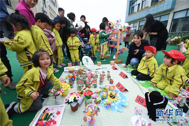 當(dāng)日,浙江省長(zhǎng)興縣畫(huà)溪街道包橋中心幼兒園舉辦校園義賣(mài)節(jié)。10多個(gè)攤位上擺放著家長(zhǎng)和孩子一起用廢舊的玻璃瓶、雪糕棍、紙盒、紐扣等廢舊材料制作而成的小木屋、迷你小盆栽、紐扣花束、風(fēng)車(chē)等手工作品,孩子們以班級(jí)為單位進(jìn)行手工作品義賣(mài),所得款項(xiàng)將全部用于社區(qū)公益環(huán)保活動(dòng)。主辦方介紹,希望通過(guò)這樣的活動(dòng),倡導(dǎo)廢物利用和綠色低碳的生活理念。