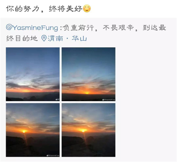 逝者如斯夫,不舍晝夜。何不趁著俯仰之間的時光奮力攀登,掙破誘惑的鎖鏈。以夢想為動力前行,以樂觀為能量堅持。只要堅持,險峰就終會被踩在腳下,無限風光也不過是眼前之景。當你橫下心,壯起膽,登上華山之巔,放眼回顧,華山的一峰一巒、一石一木,都變得更加峻拔、親近起來。