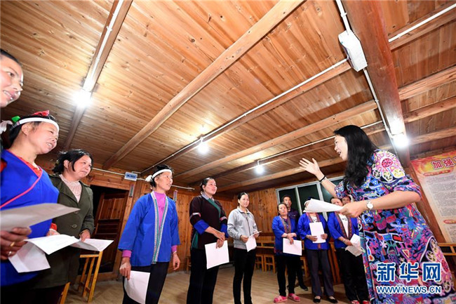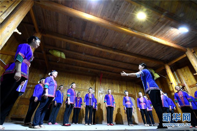 5月27日晚,在廣西柳州市三江侗族自治縣良口鄉(xiāng)燕茶村,吳純娟與村民在戲臺上排練侗族大歌。 今年42歲的吳純娟是廣西柳州市三江侗族自治縣文化館的一名文藝輔導(dǎo)員。她從小喜歡唱歌,工作后接觸并喜歡上侗族大歌,2005年起專門拜師學(xué)唱侗族大歌。如今,侗族大歌成為她主要輔導(dǎo)和傳承的音樂之一。今年3月中旬,她成為三江縣良口鄉(xiāng)燕茶村一名駐村工作隊(duì)員,侗族大歌是她扶貧的法寶。 燕茶村位于侗鄉(xiāng)大山深處的山腰上,村民們雖然熱愛歌舞,但卻無人會(huì)唱侗族大歌。吳純娟進(jìn)村后,當(dāng)即在村里開設(shè)了侗族大歌免費(fèi)培訓(xùn)班,利用晚上及其他工作之余的時(shí)間教村民唱侗族大歌,受到村民歡迎。如今,燕茶村專門成立“侗族大歌文藝隊(duì)”,隊(duì)員從一開始的20人迅速發(fā)展到33人。村部會(huì)議室、村里的戲臺、還有山上的千畝茶園……他們的歌聲幾乎傳遍了燕茶村的每個(gè)角落。 “這段時(shí)間,吳老師還利用休息時(shí)間教學(xué)校老師和學(xué)生唱侗族大歌。”燕茶村燕子小學(xué)老師楊雪連說,學(xué)校里從來沒有音樂老師,吳老師在學(xué)校里開班,師生們學(xué)習(xí)熱情也非常高。 吳純娟說:“每首侗族大歌歌唱的都是自然、勞動(dòng)和愛情之美,傳承民族文化的同時(shí),我更希望激發(fā)貧困山區(qū)群眾對美好生活的向往,提高自信,共同脫貧致富。”據(jù)了解,侗族大歌是侗族地區(qū)一種多聲部、無指揮、無伴奏、自然和聲的原生態(tài)音樂。2005年,侗族大歌被列入我國第一批非物質(zhì)文化遺產(chǎn)名錄,2009年被列入世界人類非物質(zhì)文化遺產(chǎn)代表作名錄。