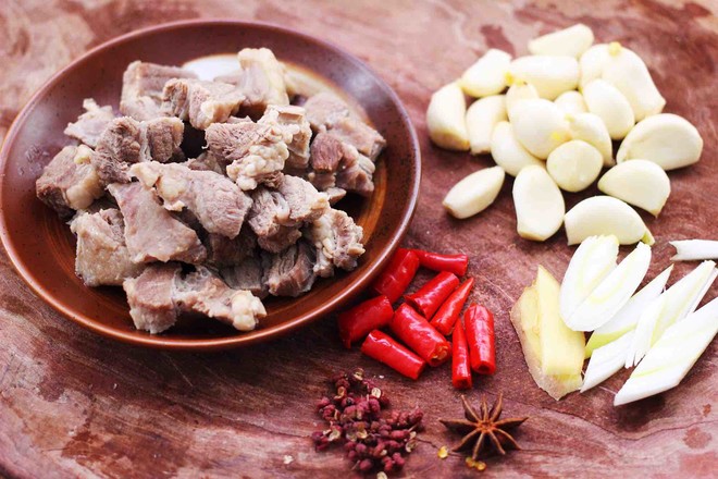 主料:牛肉600克 大蒜3頭 小米辣3個(gè)
