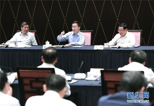 6月3日,中共中央政治局常委、國務(wù)院副總理、推動長三角一體化發(fā)展領(lǐng)導(dǎo)小組組長韓正在上海主持召開推動長三角一體化發(fā)展領(lǐng)導(dǎo)小組會議。 新華社記者 龐興雷 攝
