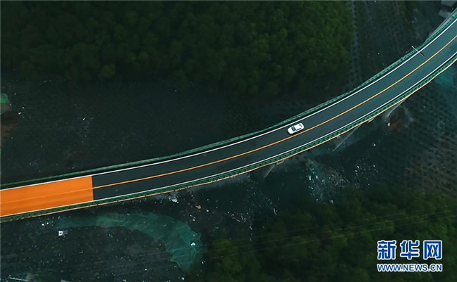 6月11日,一輛汽車在青海省扎隆溝至碾伯鎮(zhèn)公路上行駛(無人機(jī)拍攝)。 新華社記者 張宏祥 攝