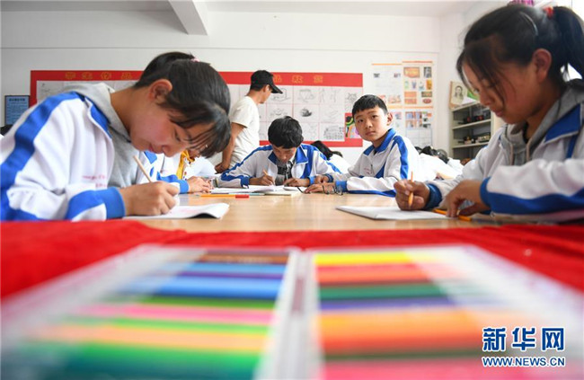 鹽井中學的學生們在上美術課(6月5日攝)。年輕的藏族女教師坐在鋼琴前,手指靈動地彈奏樂曲,兩名學生拉起弦子伴奏,三十多名學生站成四排,齊聲合唱。學?;@球場上數名身材高大的學生,正在體育老師的組織下進行激烈的分組對抗,不一會兒,學生們個個汗流浹背。綜合樓三樓的化學實驗室內,身穿白色大褂的學生,分成若干小組,正在做簡單的化學實驗。這一幕幕,同時出現在西藏昌都市芒康縣鹽井中學。新華社記者晉美多吉攝