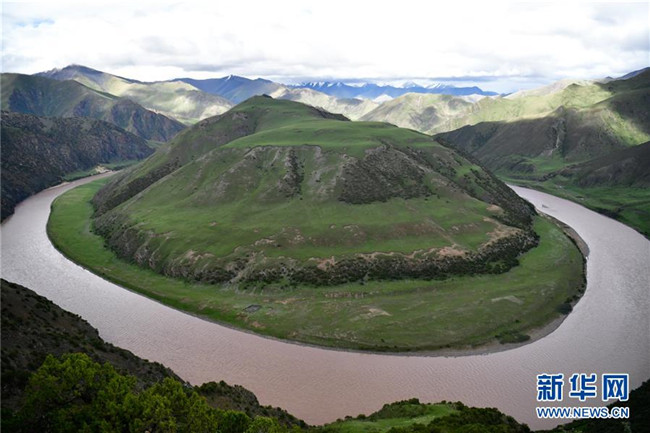 這是長江源頭干流河段通天河大轉(zhuǎn)彎(6月20日攝)。新華社記者 張龍 攝
