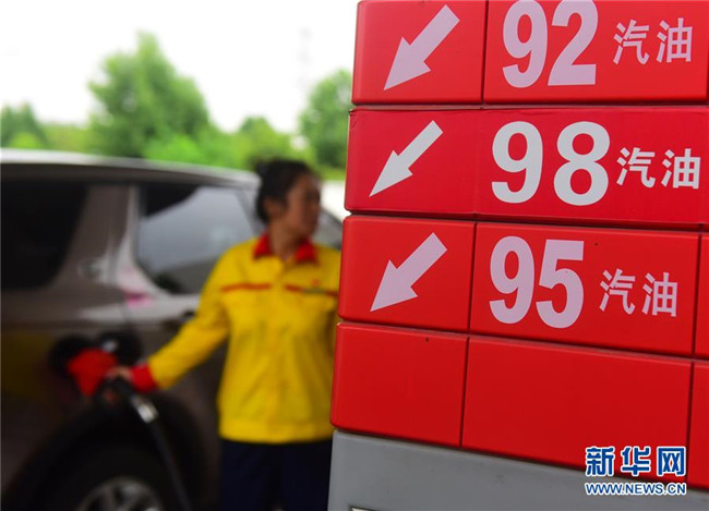 6月25日,江蘇省無錫市一加油站工作人員在給車輛加油。新華社發(fā)(還月亮 攝)