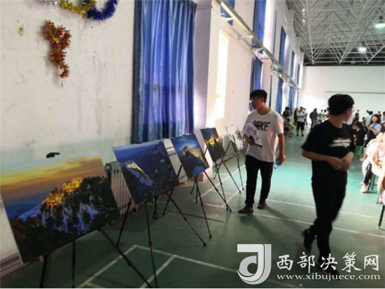 “演繹經(jīng)典”校園活動(dòng)開場(chǎng)前,舞臺(tái)前方的投影大屏循環(huán)播放華山風(fēng)光宣傳片,奇險(xiǎn)峻秀的大美華山風(fēng)光引得現(xiàn)場(chǎng)觀眾贊嘆不絕。舞臺(tái)下方分別通過華山風(fēng)光攝影展、活動(dòng)展架等形式展示了華山四季的絕美風(fēng)光,吸引眾多師生駐足觀看。