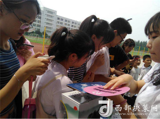 工作人員為參與活動(dòng)學(xué)生送上華山景區(qū)紀(jì)念品