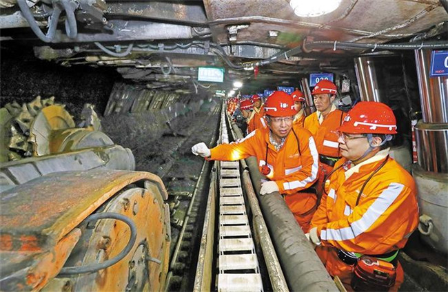 7月2日,省委書記胡和平來到錦界煤礦調研。在礦井下,他仔細了解煤礦生產運營情況。記者 宋紅梅攝