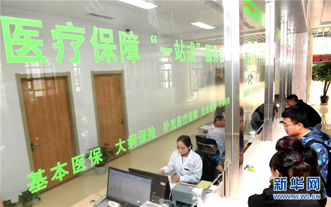 人們在陜西省延安市中醫(yī)醫(yī)院醫(yī)保結(jié)算處辦理業(yè)務(5月6日攝)。新華社記者 劉瀟 攝