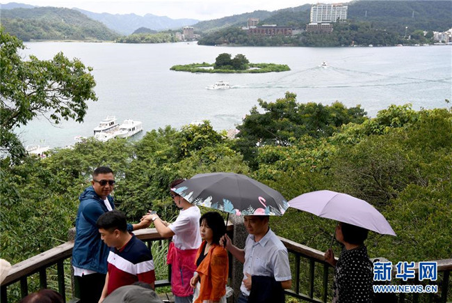 7月11日,游客在日月潭景區(qū)游玩。新華社記者 朱祥 攝
