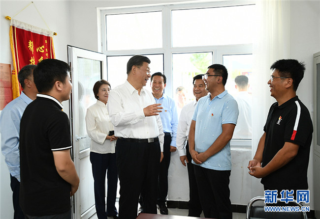7月15日至16日,中共中央總書記、國家主席、中央軍委主席習(xí)近平在內(nèi)蒙古考察并指導(dǎo)開展“不忘初心、牢記使命”主題教育。這是15日下午,習(xí)近平在赤峰市喀喇沁旗河南街道馬鞍山村村民張國利家,同基層干部群眾代表座談交流。 新華社記者 謝環(huán)馳 攝