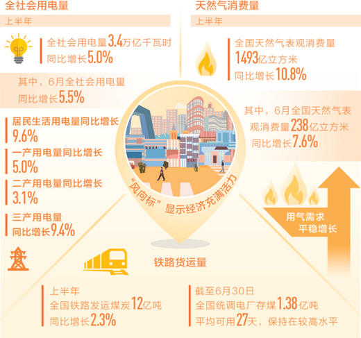 用電量、能源消費量和鐵路貨運量,常常被視為中國經(jīng)濟的風向標。經(jīng)濟是否有活力,先看這些指標是否活躍。