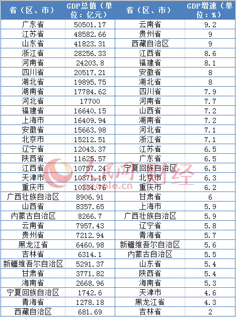 從GDP總量來看,廣東、江蘇、山東繼續(xù)躋身前三強,并與其余28省區(qū)市拉開了較大的差距。其中,廣東上半年GDP首次突破5萬億元,江蘇省上半年GDP總量為48582.66億元,山東上半年GDP總量為41823.31億元。