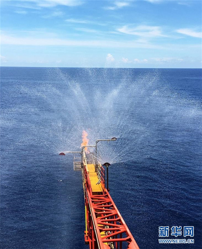 2017年7月9日拍攝的南海天然氣水合物試采工程現(xiàn)場(chǎng)。當(dāng)日,我國(guó)海域天然氣水合物(可燃冰)首次試開(kāi)采取得圓滿成功。 新華社發(fā)(朱夏 攝)