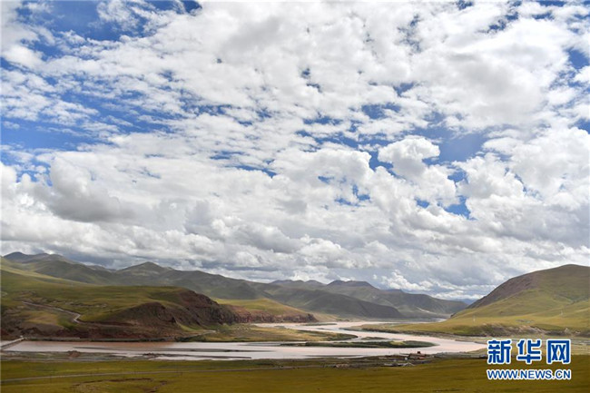 青海省玉樹藏族自治州治多縣被稱為長江源頭第一縣,這是長江源頭通天河在該縣的一處轉(zhuǎn)彎(9月12日攝)。新華社記者孫瑞博攝