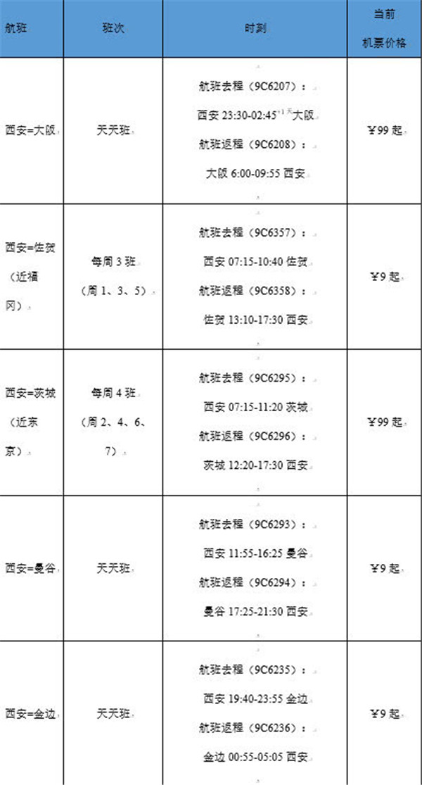 春秋航空西安新開(kāi)4條國(guó)際航線 特價(jià)機(jī)票低至9元起