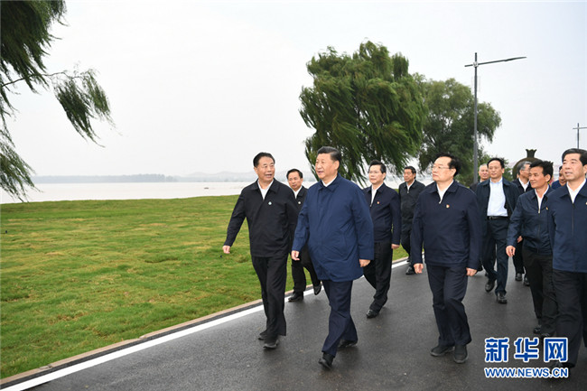 9月18日上午,中共中央總書記、國家主席、中央軍委主席習(xí)近平在鄭州主持召開黃河流域生態(tài)保護和高質(zhì)量發(fā)展座談會并發(fā)表重要講話。這是座談會前,習(xí)近平于17日下午在鄭州黃河國家地質(zhì)公園,沿黃河岸邊步行察看周邊環(huán)境,了解沿黃地區(qū)生態(tài)保護、水資源利用、堤防建設(shè)和防洪形勢等情況。 新華社記者 謝環(huán)馳 攝
