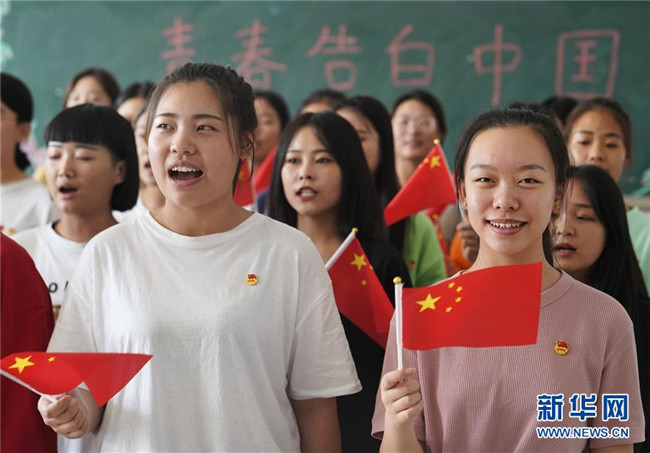 當日,河北省邢臺技師學院開展“青春告白中國”活動,學生們通過唱歌、快閃、專業(yè)課程等形式,表達對祖國的熱愛和祝福。 新華社記者 邢廣利 攝