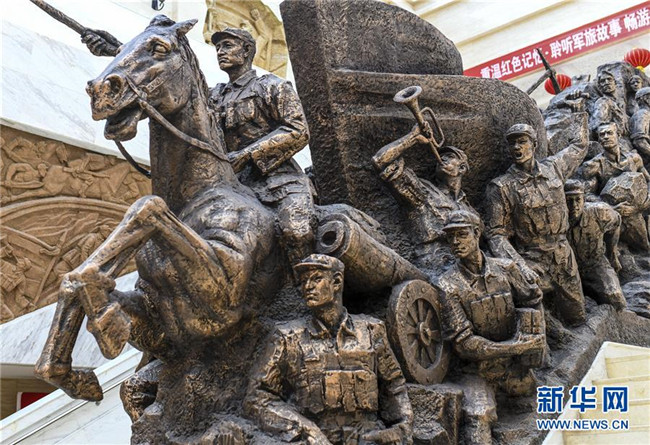 這是在新疆生產(chǎn)建設兵團第六師五家渠市博物館內(nèi)展出的大型雕塑《軍墾魂》(7月31日攝)。新華社記者 王菲 攝