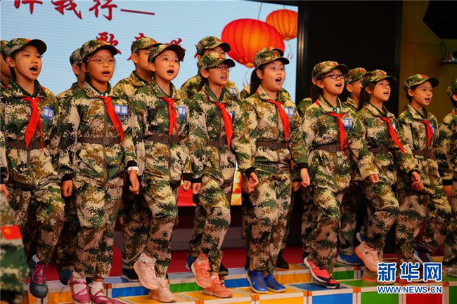當(dāng)日,北京市建華實驗學(xué)校小學(xué)部舉行“意志伴我行——歌聲嘹亮”紅色歌曲大合唱活動。師生們在歌聲中接受了一場愛國主義教育。 新華社記者 吳建路 攝