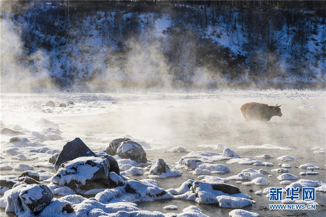 “不凍河”位于內(nèi)蒙古興安盟阿爾山市境內(nèi),是哈拉哈河的一段長(zhǎng)約20公里的河段,該河段嚴(yán)冬從不封凍,被稱為“不凍河”。據(jù)地質(zhì)專家考證,這里集聚著豐富的地?zé)豳Y源,流經(jīng)此地的河流,在嚴(yán)冬零下40多攝氏度的氣溫下也不結(jié)冰,故形成這一奇特的景觀。