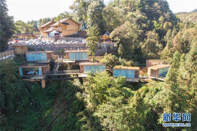 這是湖南省湘西土家族苗族自治州花垣縣十八洞村的一處民宿酒店(10月29日無(wú)人機(jī)拍攝)。新華社記者 陳思汗 攝