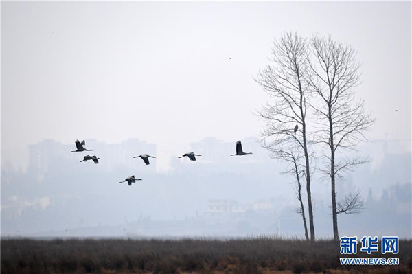 近日,大批候鳥陸續(xù)飛抵貴州草海國家級自然保護區(qū)越冬。草海管理委員會12月11日監(jiān)測數(shù)據(jù)顯示,目前已有黑頸鶴1500余只、灰鶴560余只、斑頭雁2400余只及其他候鳥飛抵草海越冬。近年來,隨著草海加大生態(tài)環(huán)境保護力度,前來此地越冬的候鳥逐年增多。新華社記者楊文斌攝