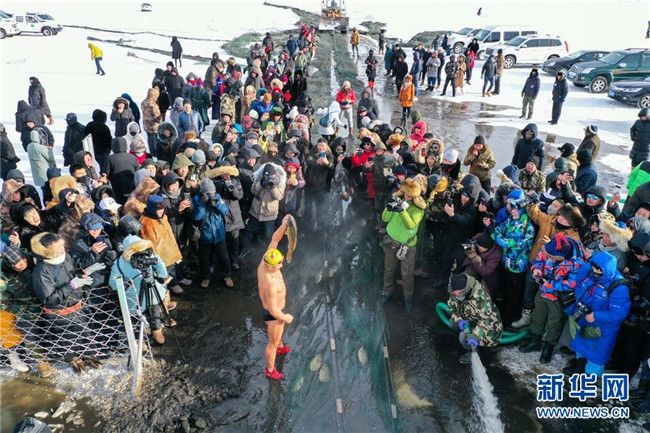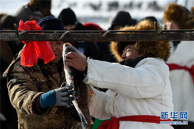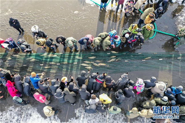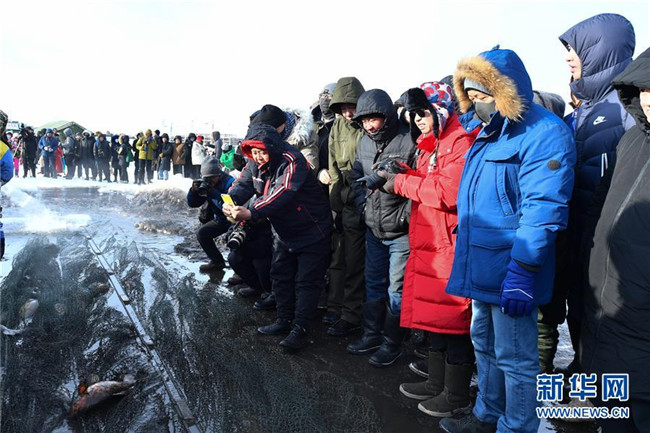 12月18日,人們在諾干湖觀看冬捕活動。新華社記者 劉磊 攝