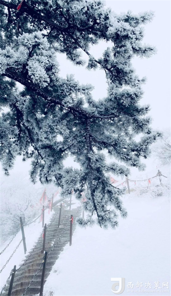 2020年第一場(chǎng)雪,紛紛揚(yáng)揚(yáng)灑落華山之巔。圣潔的雪花把華山妝扮得分外妖嬈嫵媚,平日陡峭的巖石,象穿著潔白的羽衣,宛若天仙般亭亭玉立于峰頭路旁,似向游人拂疑,微笑致意,最讓為之從心里震顏起敬的是,華山雪中松樹(shù)的雄姿與風(fēng)情。
