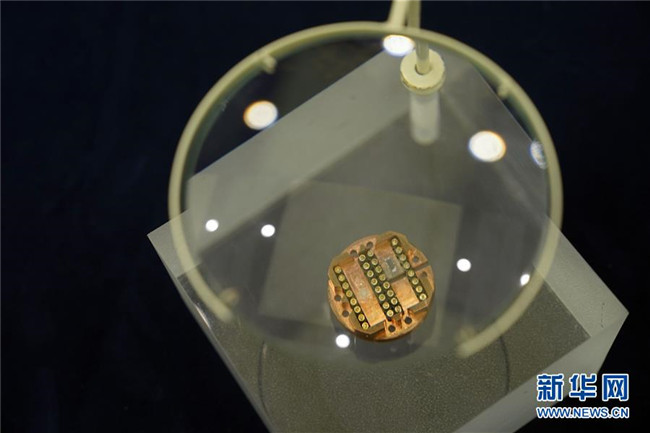 這是在天津?yàn)I海——中關(guān)村科技園協(xié)同創(chuàng)新展示中心展示的飛騰芯片(2019年1月17日攝)。 新華社記者 岳月偉 攝
