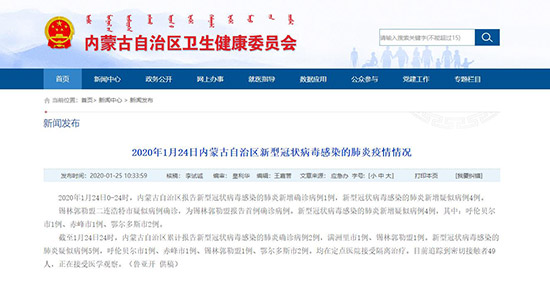 內蒙古自治區(qū)衛(wèi)生健康委員會官網截圖