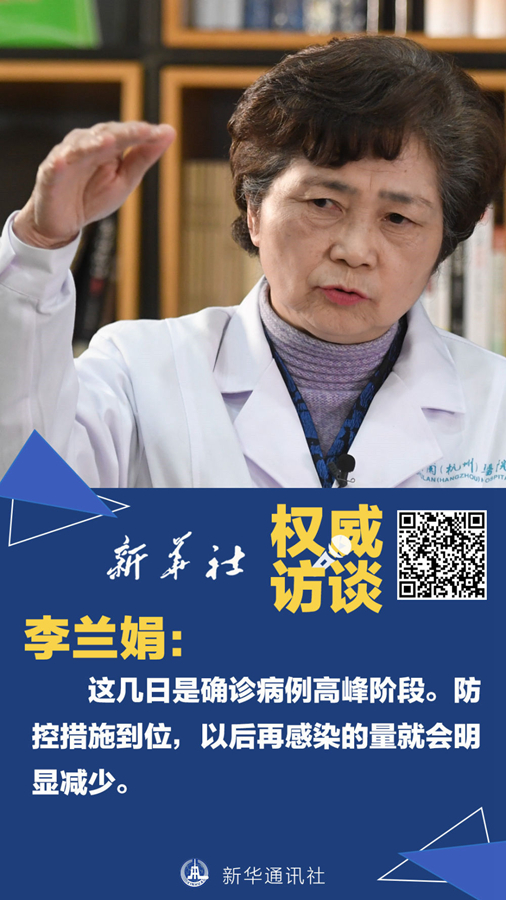 李蘭娟:之前為潛伏期的病人開始發(fā)病。早期武漢流到全國各地的病人以及留在武漢的病人都到了發(fā)病期,這是高峰來臨的一個階段,一點也不奇怪?,F(xiàn)在,發(fā)病的人我們隔離了,與他們有密切接觸的人員也調查出來、隔離起來,以后再感染的數量會明顯減少。武漢“封城”是非常英明的決策。正好趕上春節(jié)人口大流動,只有嚴格地把武漢控制起來,其他的地方才會減少發(fā)病率。
