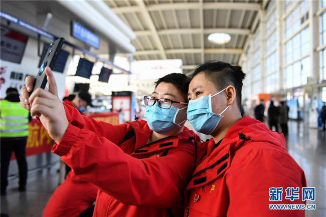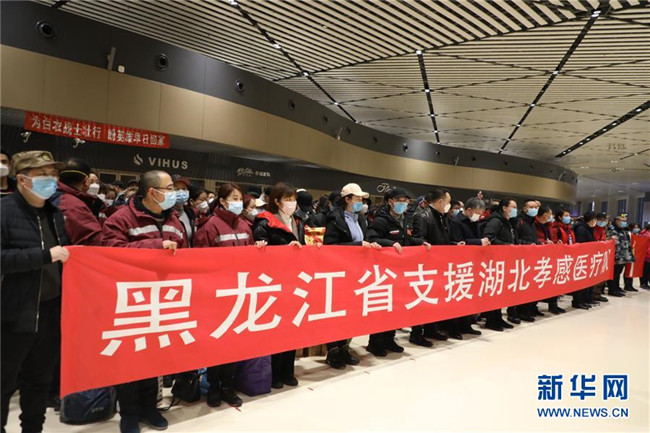2月12日,黑龍江省對口支援湖北孝感醫(yī)療隊(duì)從哈爾濱出發(fā)。 新華社記者 齊泓鑫 攝