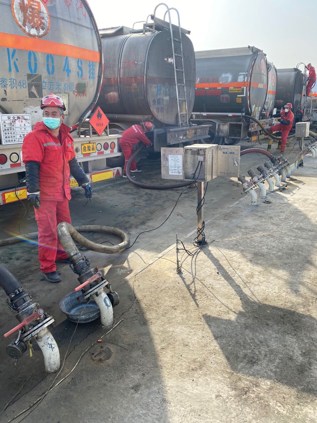 已近零時,空曠的付油區(qū)氣溫早已降至零攝氏度以下。此時,油庫的發(fā)油作業(yè)依然沒有停止……油庫的幾名工友,頭戴紅色安全帽、身著藍色工裝,對入庫油庫油車進行安全檢查,驗票員仔細核對著票據(jù)信息,引導車輛正確???,不斷提示駕駛員注意操作安全。