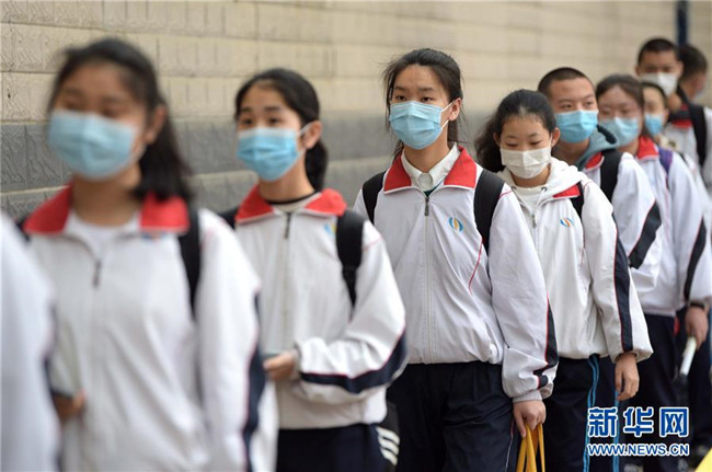 當(dāng)日,陜西初三年級(jí)35.46萬(wàn)學(xué)生、中等職業(yè)學(xué)校畢業(yè)年級(jí)5.83萬(wàn)學(xué)生返校復(fù)課。 新華社記者 劉瀟 攝
