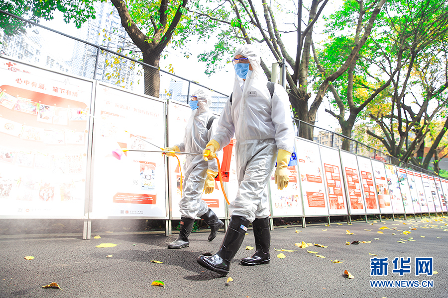 重慶市第十一中學,正式復學復課后,學校將每天早晚各一次定時開展消毒工作——室外場地采用噴灑消毒液方式進行徹底消毒,學生寢室設施及體育器材將采取擦拭消毒液、晾曬,紫外線消毒等方式進行消毒。新華網 彭博攝