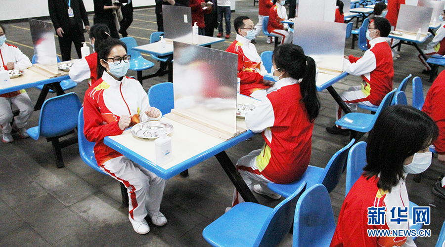 為了防止在就餐時交叉感染,重慶許多學校都對食堂設施進行了相應改造——譬如在就餐位上安裝隔板,以做到錯時錯峰分散用餐。圖為兩江育才中學演練食堂就餐環(huán)節(jié)。新華網發(fā)
